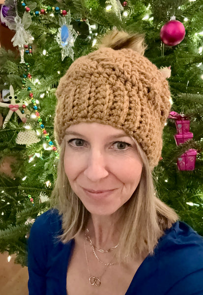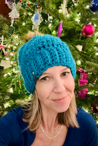 Handmade adult sized crocheted warm winter hats complete with pom-pom!